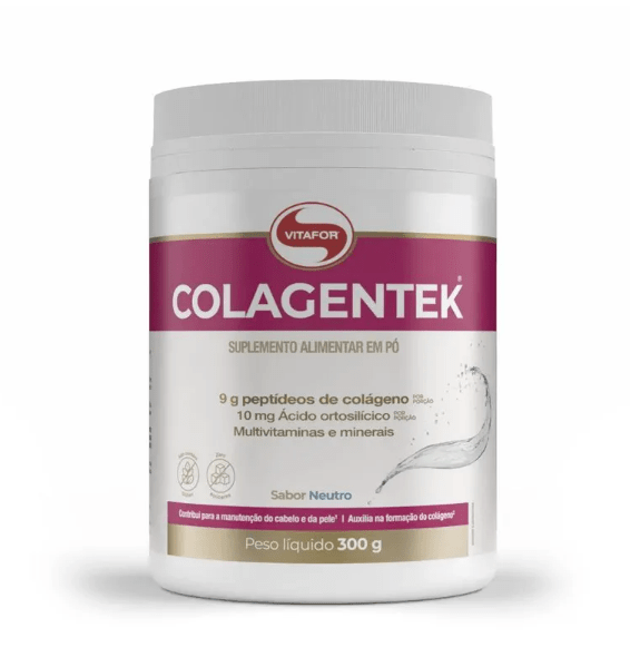 COLAGENTEK® é um suplemento alimentar em pó à base de peptídeos de colágeno, enriquecido com vitaminas e minerais essenciais para pele, cabelos, unhas, ossos e articulações. Sua versão neutra é versátil, podendo ser adicionada em água, sucos ou na sua bebida favorita.